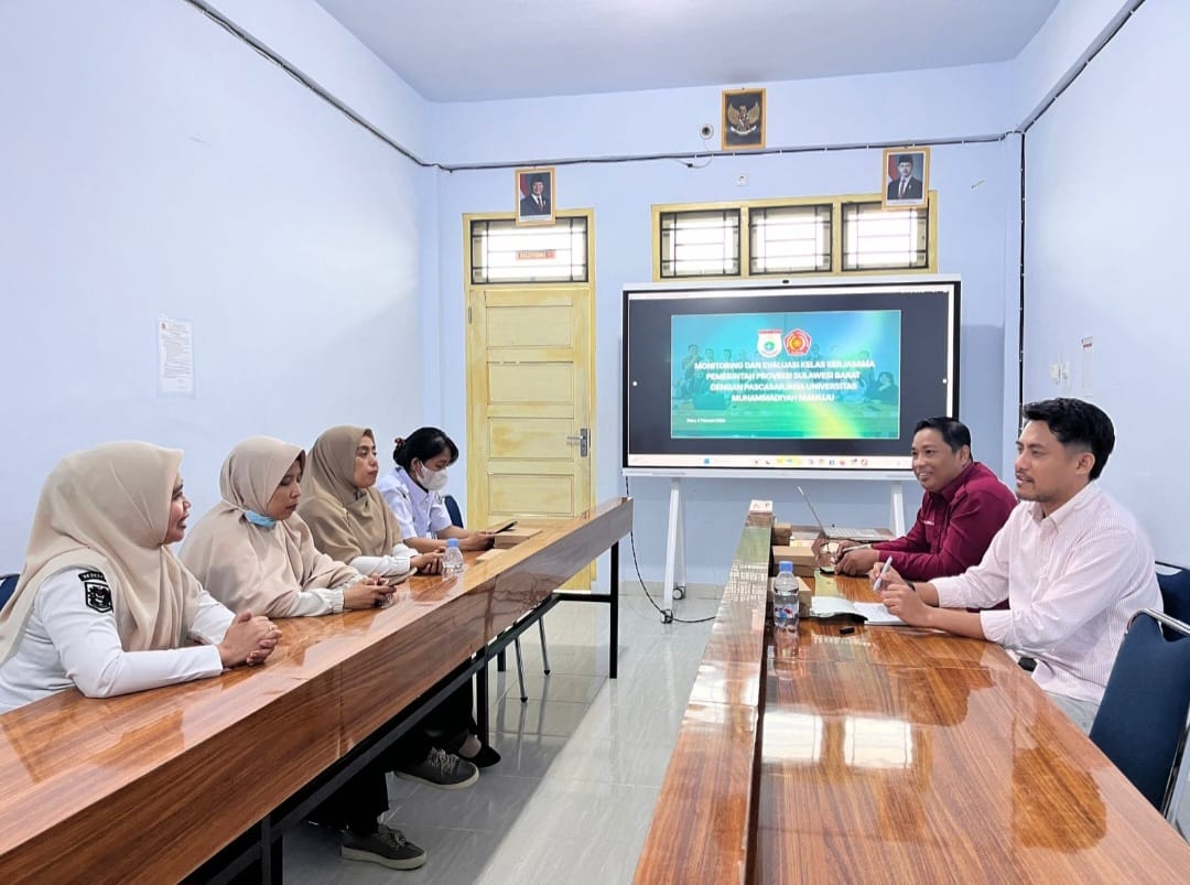 Mamuju (pelitapagi.com) Badan Kepegawaian dan Pengembangan Sumber Daya Manusia (BKPSDM) Provinsi Sulawesi Barat melaksanakan Monitoring dan Evaluasi (Monev) pelaksanaan Kelas Kerja Sama antara Pemerintah Provinsi Sulawesi Barat dan Universitas Muhammadiyah Mamuju (Unimaju).
