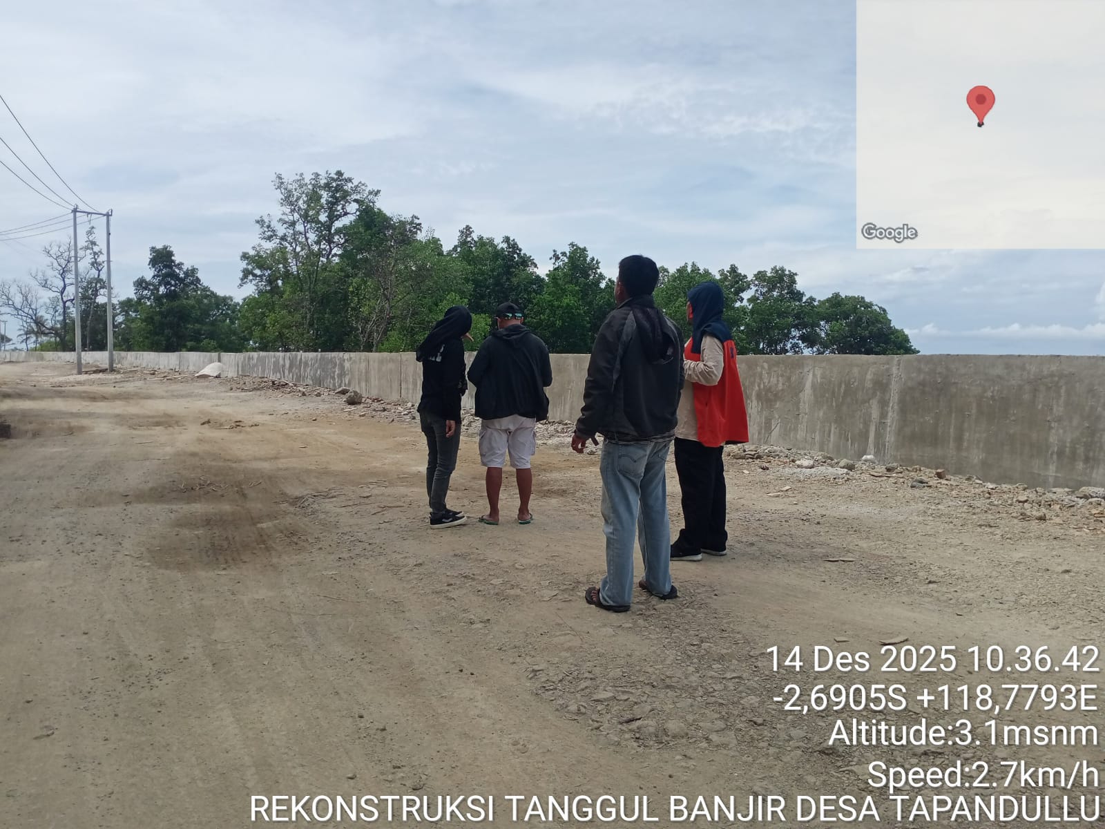 Mamuju (pelitapagi.com) Tim Teknis Hibah Rehabilitasi dan Rekonstruksi Badan Penanggulangan Bencana Daerah (BPBD) Provinsi Sulawesi Barat (Sulbar) melaksanakan pengambilan visual udara menggunakan drone pada lokasi pekerjaan pembangunan tanggul BTS Jalan Pattana Endeng – BTS Tapalang Barat, Kabupaten Mamuju, Minggu (14/12/2025).