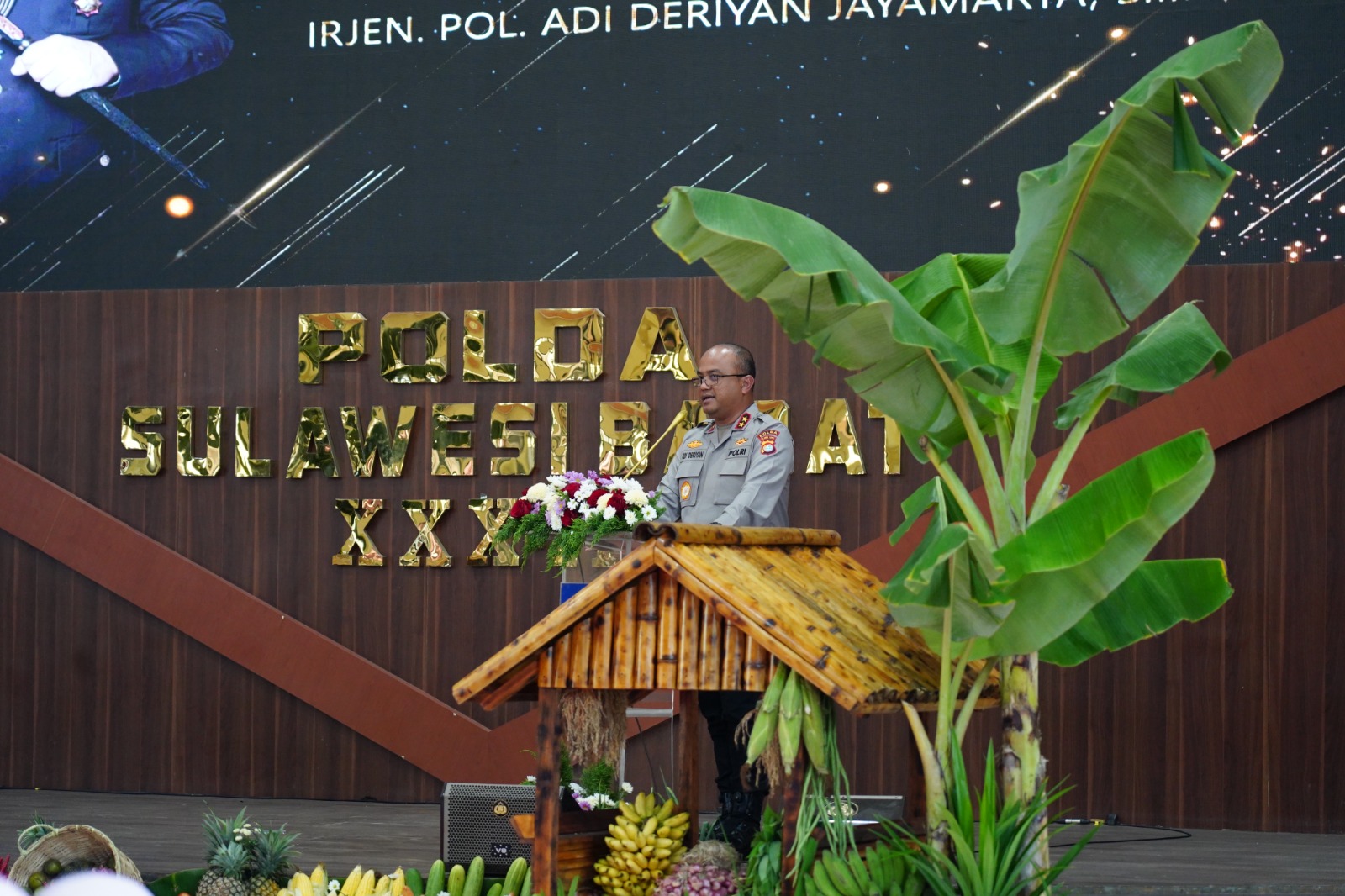 MAMUJU (pelitapagi.com) Kapolda Sulbar, Irjen Pol Adi Deriyan, membuka kegiatan Hari Kesatuan Gerak Bhayangkari (HKGB) ke-73 dengan mengajak Bhayangkari berperan aktif dalam program “Makan Bergizi Gratis” (MBG) dan ketahanan pangan nasional. Acara yang berlangsung meriah ini dihadiri oleh jajaran pejabat utama Polda Sulbar, Kapolres se-Sulbar serta anggota Bhayangkari, Kamis (23/10/25).