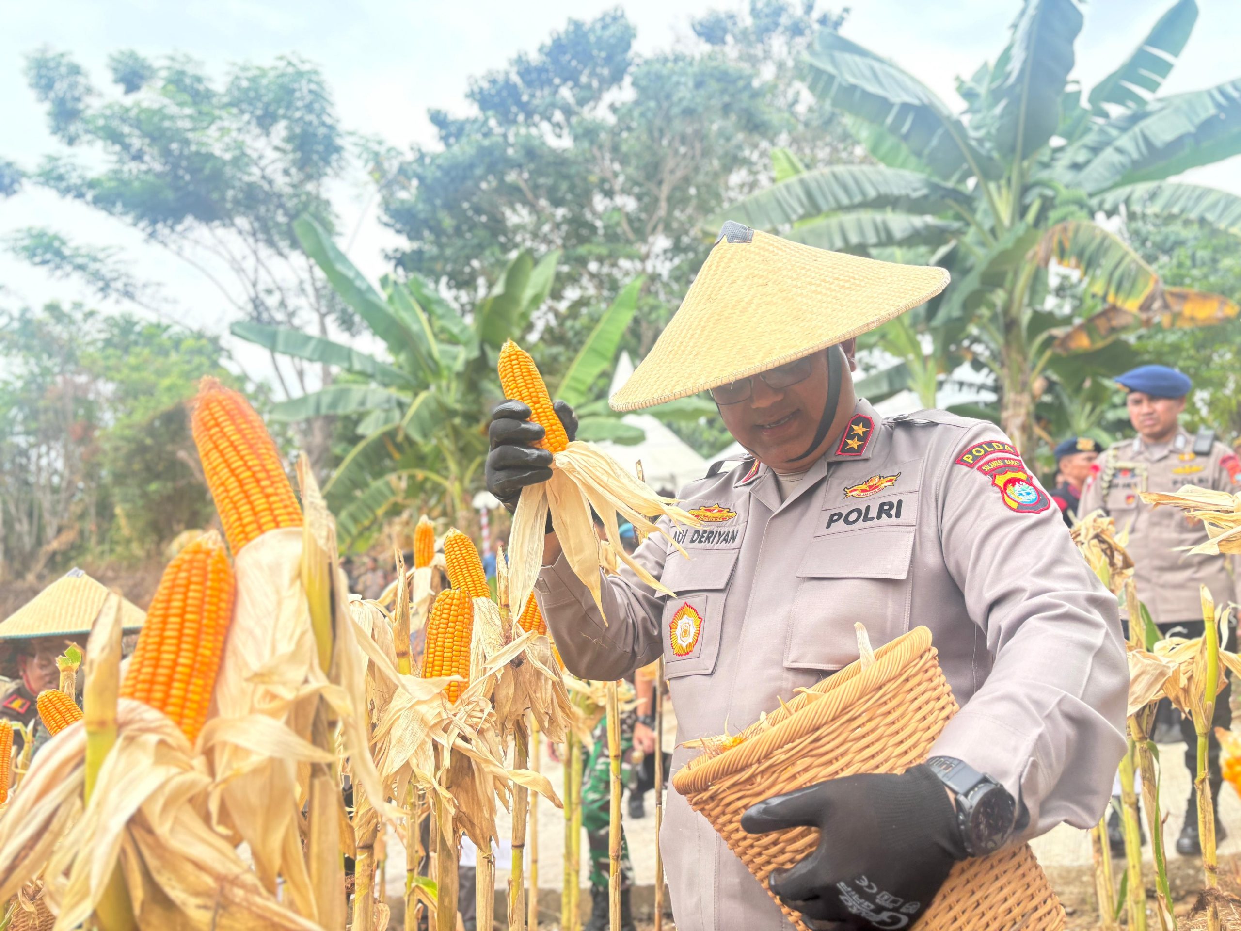 Usai kegiatan secara daring, Kapolda beserta tamu undangan dan masyarakat setempat bersama-bersama memanen hasil jagung yang berkualitas dan selanjutnya akan di kirim ke perum Bulog sebagai pemenuhan cadangan jagung pemerintah.