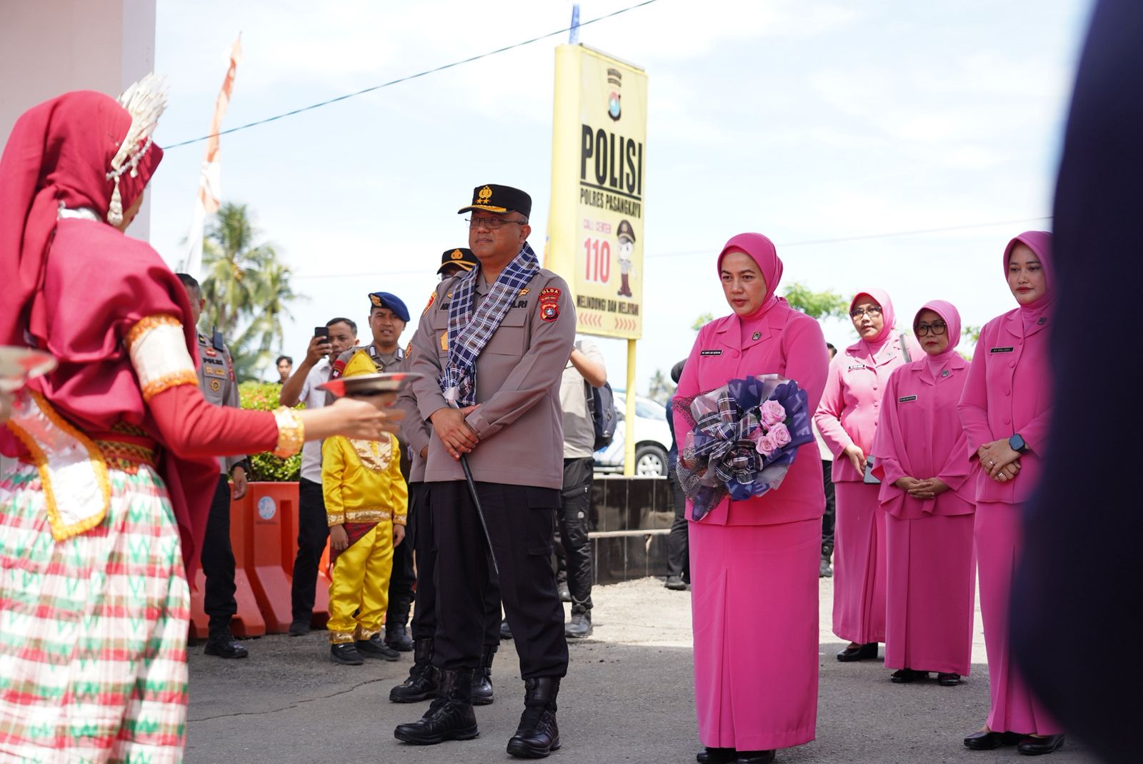 Tiba di Polres Pasangkayu, Kapolda Adi Deriyan disambut dengan pengalungan bunga dan jajar kehormatan, menandai kedatangan beliau sebagai momentum penting bagi seluruh anggota Polres.
