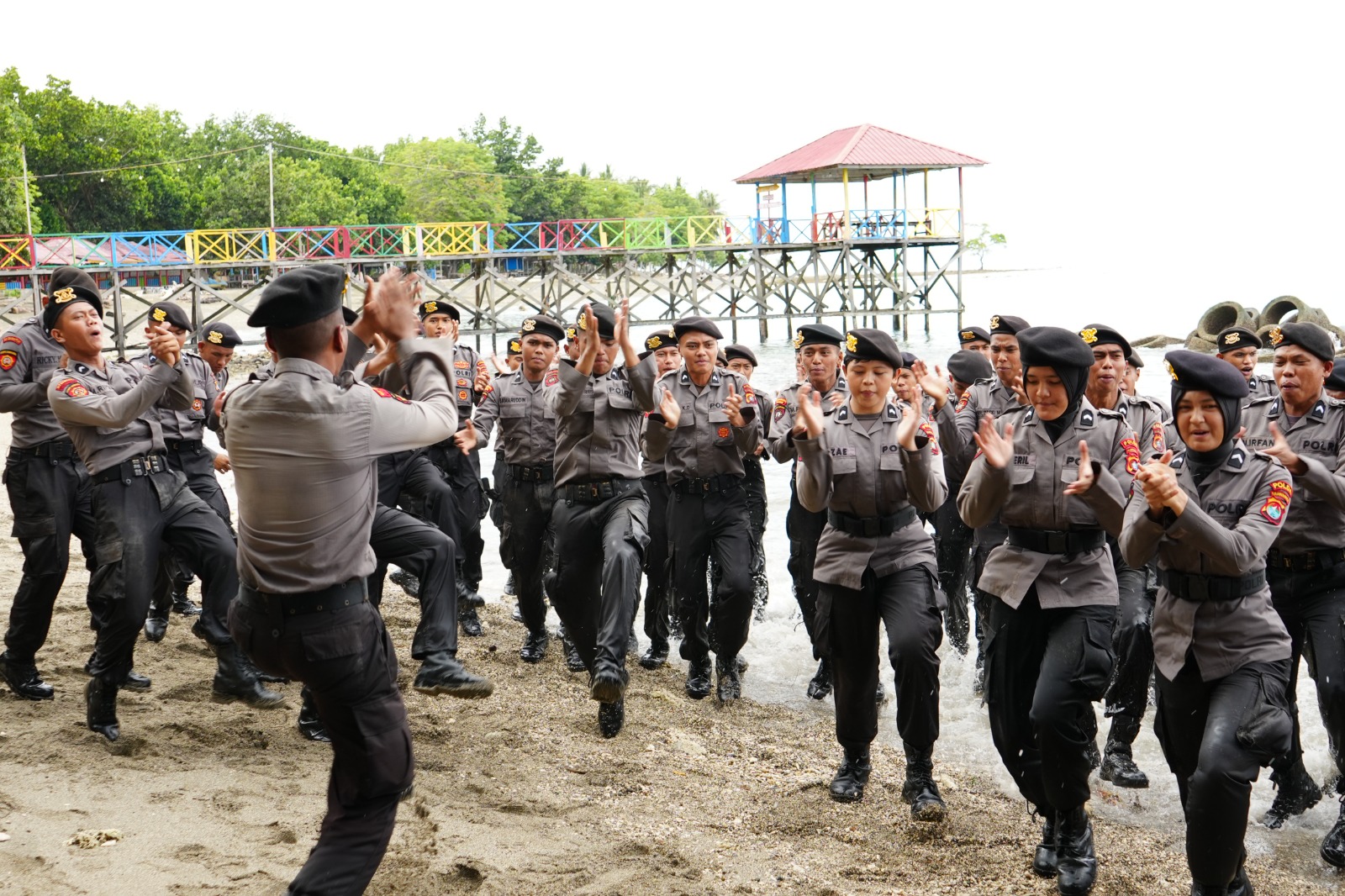 MAMUJU (pelitapagi.com) Tradisi pembaretan bagi bintara remaja angkatan 54/58 berlangsung di Pantai Malauwa, Selasa (20/1/26) yang dipimpin langsung Kapolda Sulbar Irjen Pol Adi Deriya Jayamarta dan dihadiri para pejabat utama Mapolda.