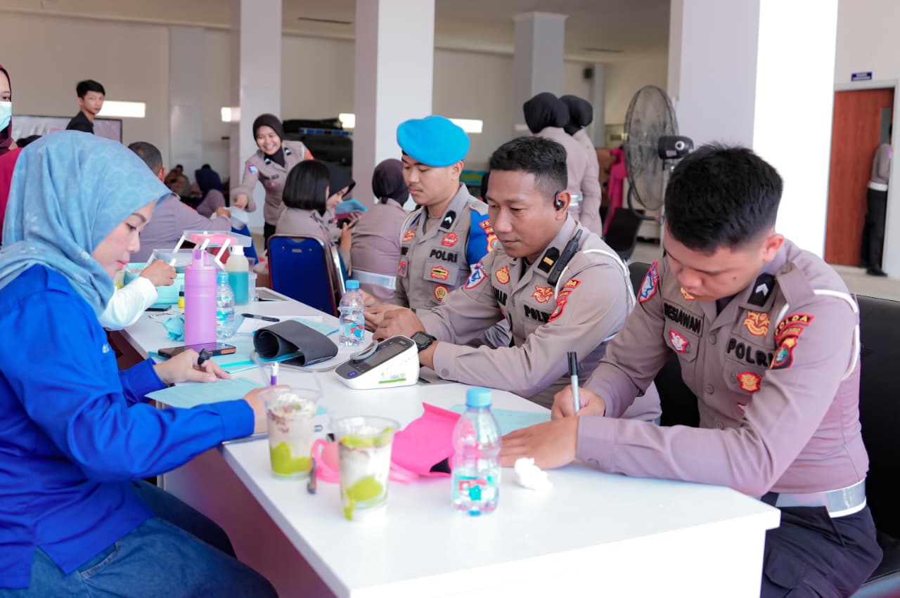 Kegiatan yang dipusatkan dikantor BPKB Ditlantas ini, menawarkan berbagai layanan kesehatan cuma-cuma, meliputi pemeriksaan kesehatan umum, donor darah, hingga sunatan massal. Antusiasme masyarakat terlihat jelas dengan banyaknya warga yang memanfaatkan kesempatan ini untuk memeriksakan kondisi kesehatan mereka.