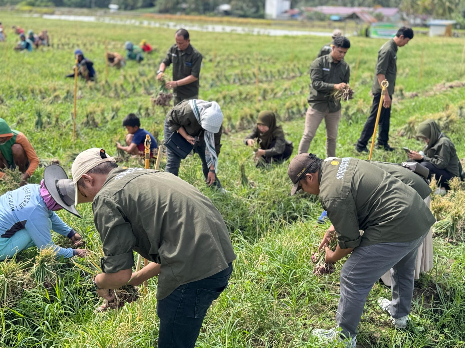 Kegiatan ini merupakan hasil dari penyaluran bantuan benih bawang merah dan pupuk organik Tahun 2025. Dengan luas panen mencapai 1,5 hektare, potensi hasil produksi diperkirakan mencapai 15 ton, menjadi capaian yang membanggakan sekaligus meningkatkan optimisme petani terhadap usaha tani hortikultura.