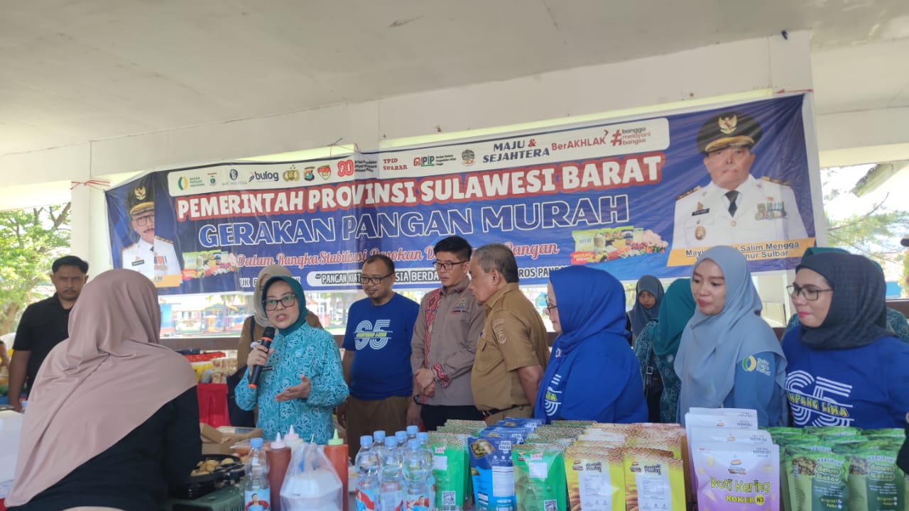 MAMUJU (pelitapagi.com) Tim Penggerak Pemberdayaan dan Kesejahteraan Keluarga (TP-PKK) bekerjasama dengan Komunitas Simpang Lima (S5) dan Dinas Ketapang Sulbar melaksanakan pameran UMKM Hypermart dan GPM di Ahmad Kirang, Senin 13 Oktober 2025.