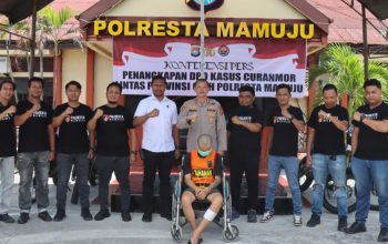 Mamuju (pelitapagi.com) Tim Resmob Polresta Mamuju akhirnya menuntaskan janji pengejaran terhadap buronan kasus pencurian kendaraan bermotor (curanmor) lintas provinsi. ICH (27), yang diduga kuat sebagai otak di balik aksi pencurian di 15 TKP berbeda, berhasil diringkus setelah pelariannya selama 15 hari berakhir di Kotamobagu, Sulawesi Utara.
