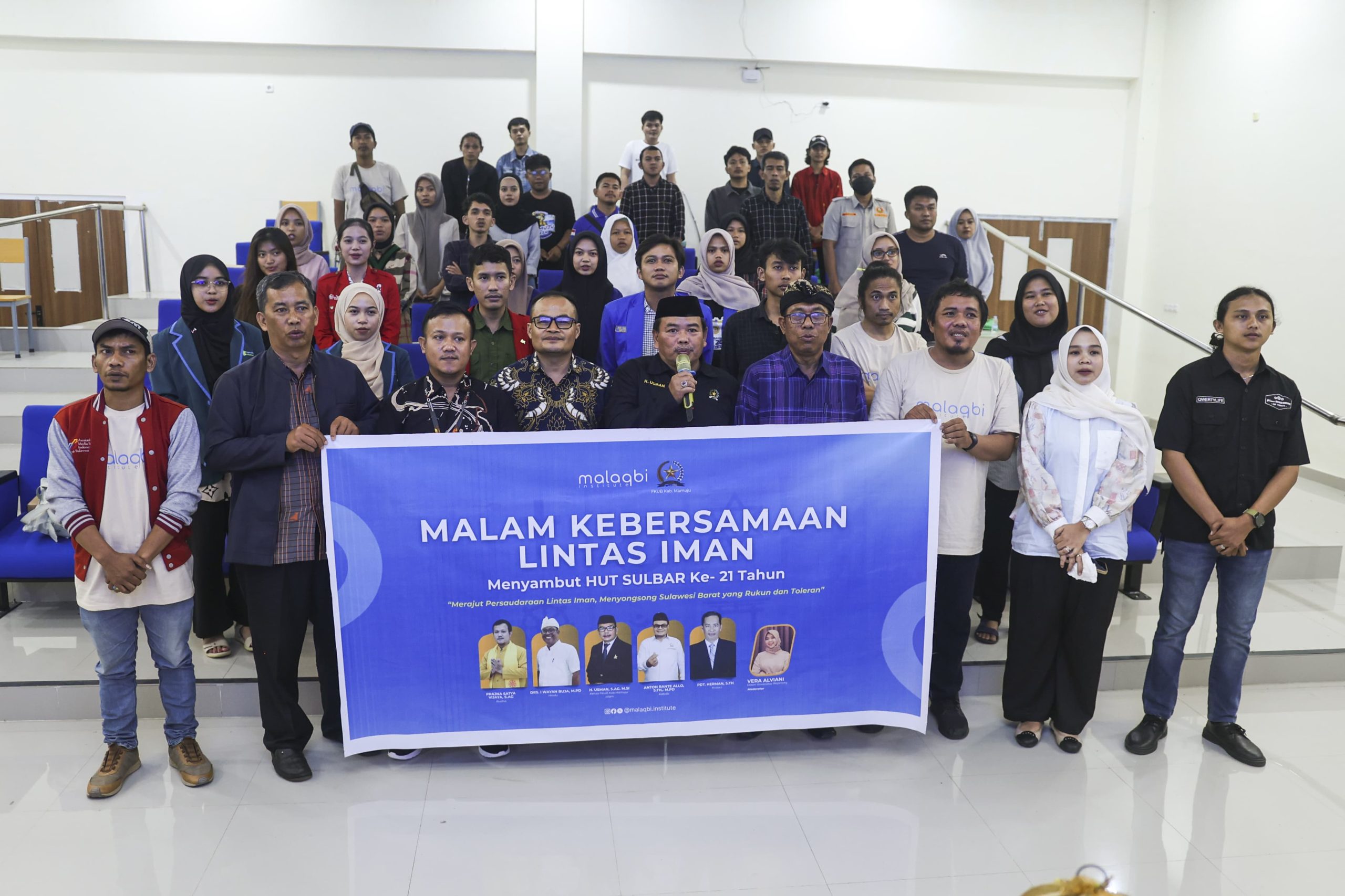 MAMUJU (pelitapagi.com) Dalam rangka menyambut Hari jadi Provinsi Sulawesi Barat ke-21 Tahun, Malaqbi Institute dan Forum Kerukunan Umam Beragama (FKUB) Mamuju kolaborasi menggelar kegiatan malam Kebersamaan Lintas Iman. di Aula Gedung Teater Keren Mamuju, Minggu 21 September 2025.