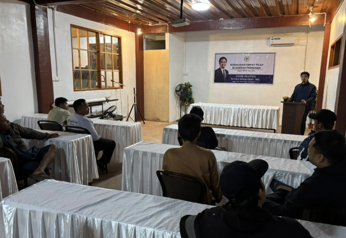 POLMAN (pelitapagi.com) Mengawali hari kedua dalam rangkaian agenda di Polewali Mandar, Anggota MPR RI Andri Prayoga Putra Singkarru, MSc., kembali menyapa konstituennya dalam kegiatan Sosialisasi Empat Pilar MPR RI. Bertempat di Hotel Ratih Polewali Mandar, kegiatan ini merupakan sosialisasi ke-9 yang dilaksanakan sepanjang tahun 2025.