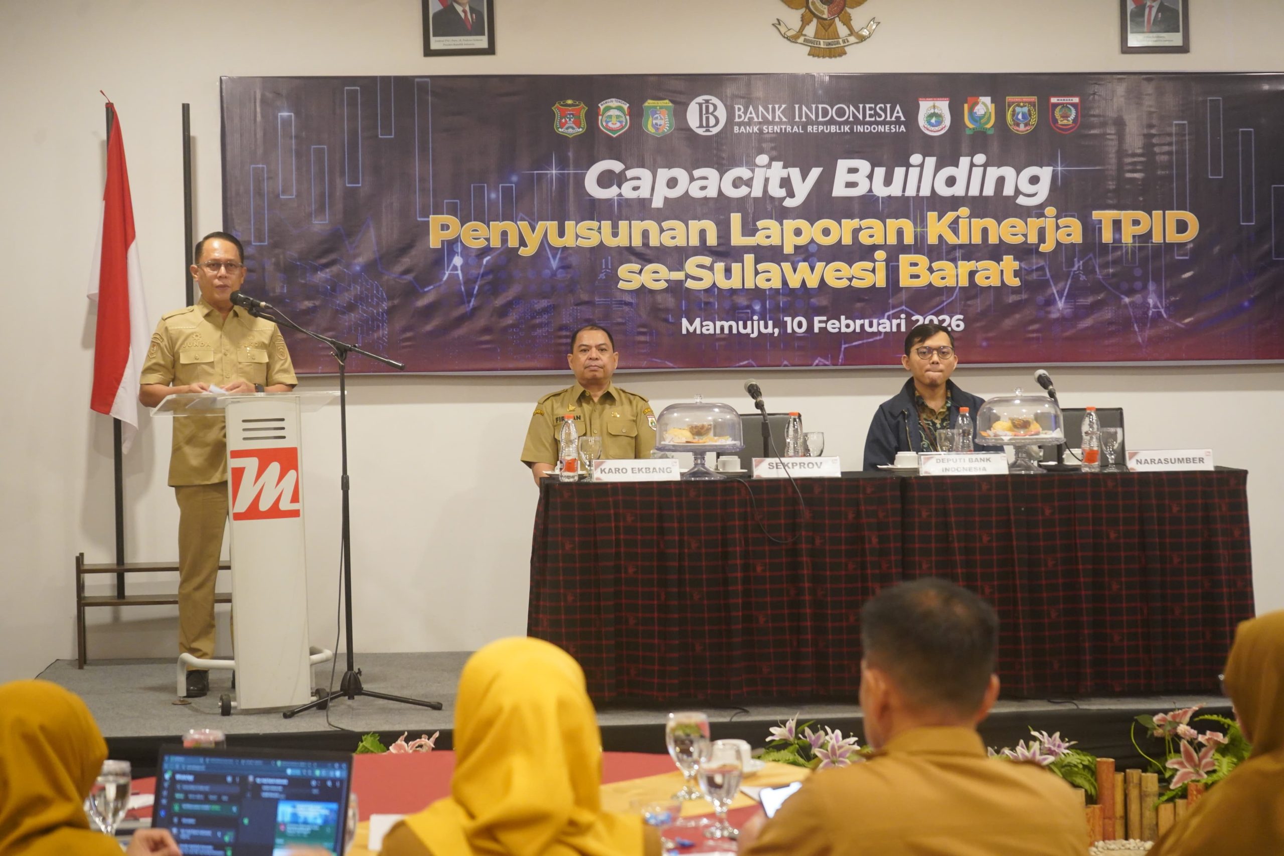“Walaupun daerahnya kita belum bisa sejajar, tapi prestasi-prestasi harus bisa sejajar dengan provinsi lain, khususnya dari region Sulawesi,” kata Junda Maulana saat membuka Capacity Building penyusunan laporan kinerja TPID se-Provinsi Sulawesi Barat di Hotel Maleo, Selasa 10 Februari 2026.