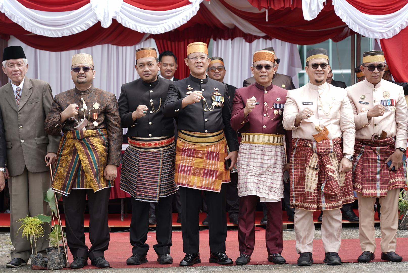 Brigjen Pol Hari Santoso tampil dengan balutan busana adat yang gagah, mencerminkan komitmennya untuk terus bersinergi dengan pemerintah daerah dan seluruh elemen masyarakat.