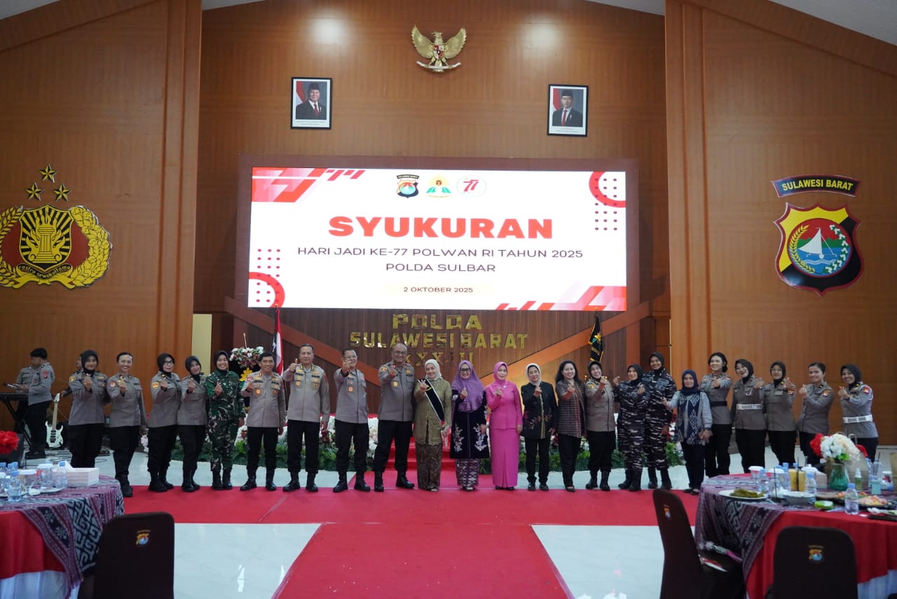MAMUJU (pelitapagi.com) Polda Sulawesi Barat menggelar syukuran Hari Ulang Tahun ke-77 Polisi Wanita (Polwan) Republik Indonesia dengan meriah di Aula Marannu, Kamis (2/10/25).