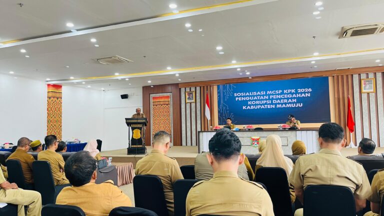 Mamuju (pelitapagi.com) Pemerintah Kabupaten Mamuju melalui Inspektorat Daerah melaksanakan kegiatan sosialisasi Monitoring Controlling Surveillance for Prevention (MCSP) sebagai upaya penguatan pencegahan korupsi di daerah.