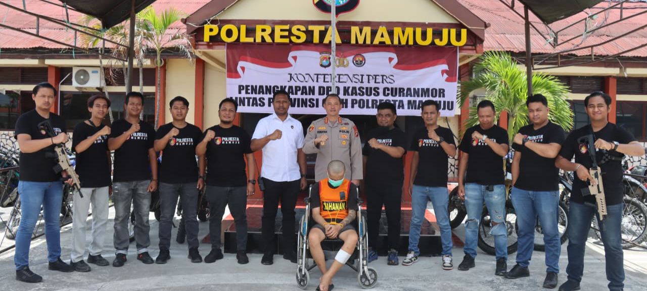 Mamuju (pelitapagi.com) Tim Resmob Polresta Mamuju akhirnya menuntaskan pengejaran terhadap buronan kasus pencurian kendaraan bermotor (curanmor) lintas provinsi. ICH (27), yang diduga kuat sebagai otak di balik aksi pencurian di 15 TKP berbeda, berhasil diringkus setelah pelariannya selama 15 hari berakhir di Kotamobagu, Sulawesi Utara.