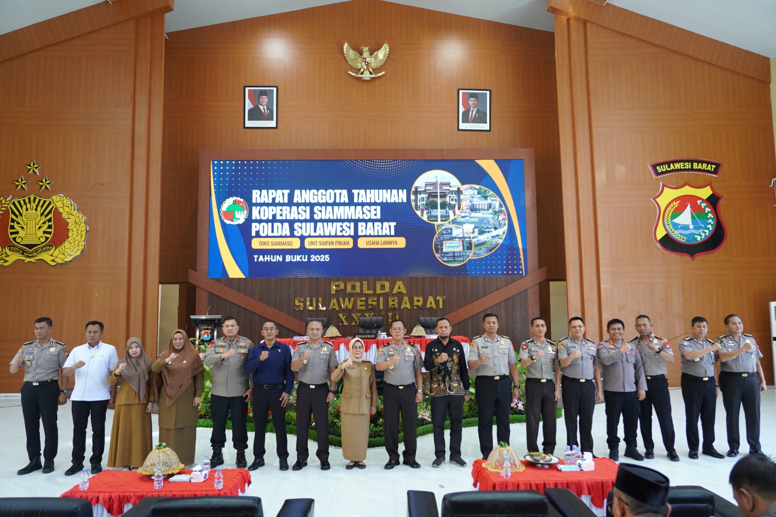 MAMUJU (pelitapagi.com)  Wakapolda Sulawesi Barat Brigjen Pol Hari Santoso memimpin Rapat Anggota Tahunan (RAT) Koperasi Siammasei Polda Sulbar untuk tahun buku 2025, yang berlangsung di Aula Marannu Mapolda, Selasa (27/1/26).