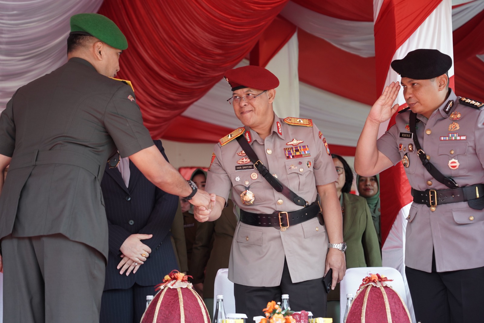 MAMUJU (pelitapagi.com) Wakapolda Sulawesi Barat Brigjen Pol Hari Santoso turut memeriahkan upacara Hari Juang TNI Angkatan Darat (AD) tahun 2025 yang digelar di Lapangan Ahmad Kirang, Mamuju Senin (15/12/25).